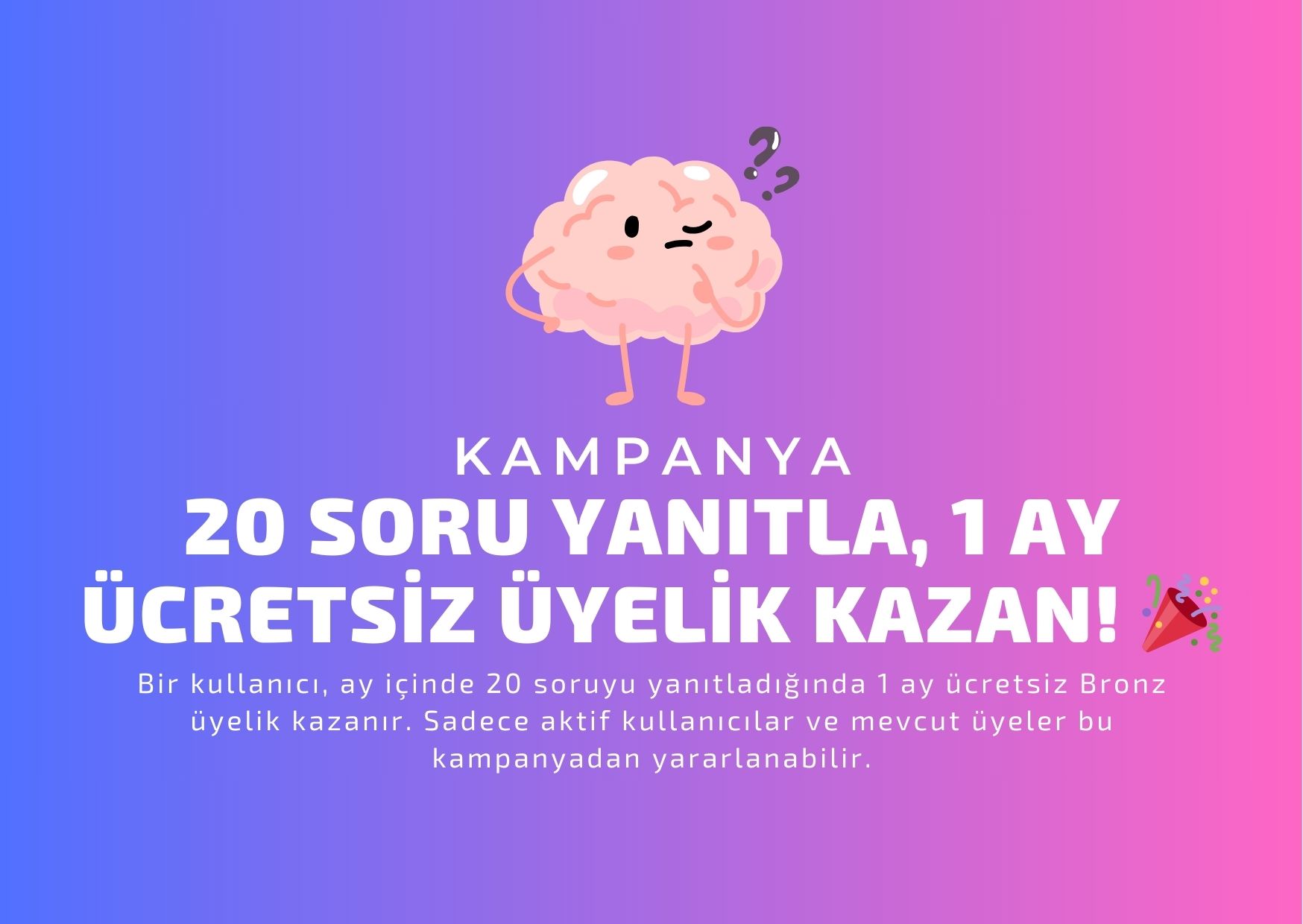 20 Soru Yanıtla, 1 Ay Ücretsiz Üyelik Kazan! 🎉